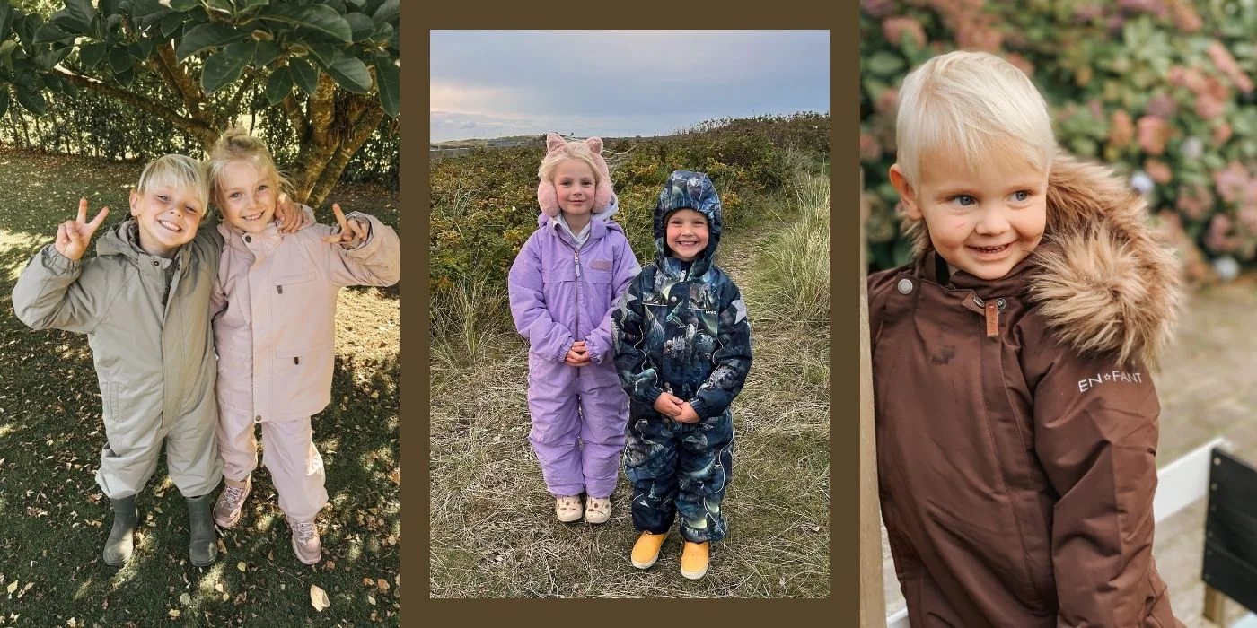 Vi synes kvaliteten er helt ideelt til det danske vintervejr, hvor kulde, blæst og våde dage ofte skifter. Dragterne tørrer hurtigt og holder til mange timers leg – uden at blive stive, slidte eller gennemblødte.